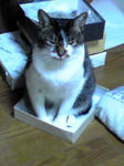 でも「その箱が小さくないかい?」に目を細めて「にゃ〜」と返事をしてくれた所を撮りました