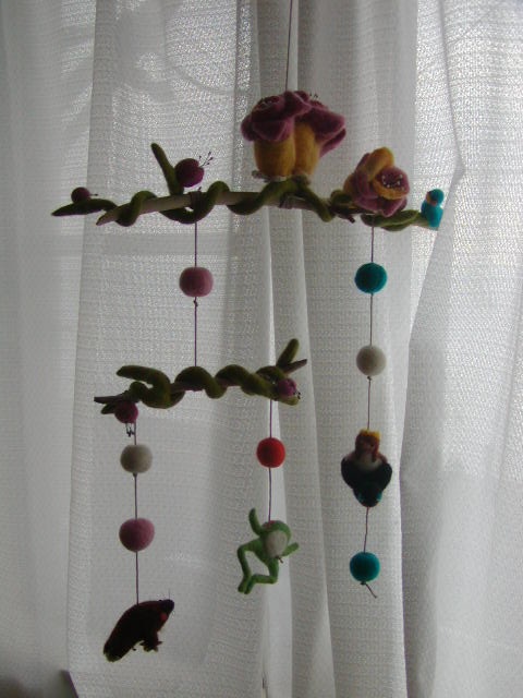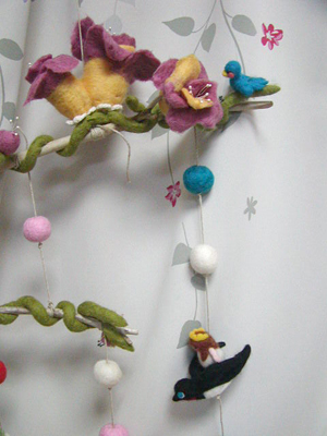 今回の画像は親指姫のモビールの、お花の部分(下画像)のフエルト化の画像です