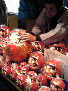 毎年恒例なのですが〜商売繁盛を願って白い眼を黒く塗りつぶして行くのです〜☆