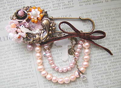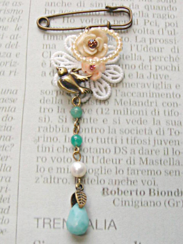 画像は天然石アマゾナイト使用のピンブローチ、次回UP予定